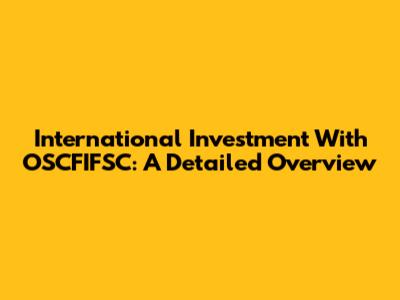 International Investment With OSCFIFSC: A Detailed Overview