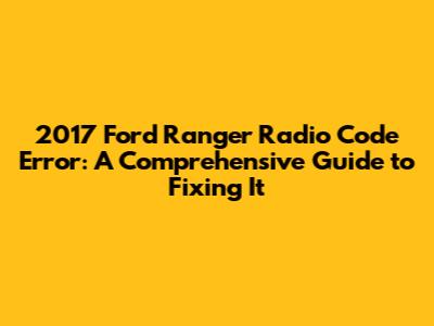 Understanding the 2017 Ford Ranger Radio Code Error
