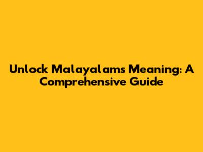 Unlock Malayalam's Meaning: A Comprehensive Guide