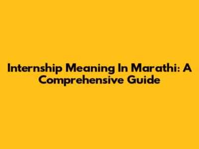Internship Meaning In Marathi: A Comprehensive Guide