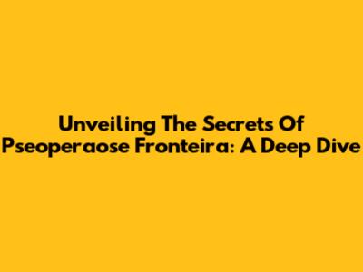 Unveiling The Secrets Of Pseoperaose Fronteira: A Deep Dive