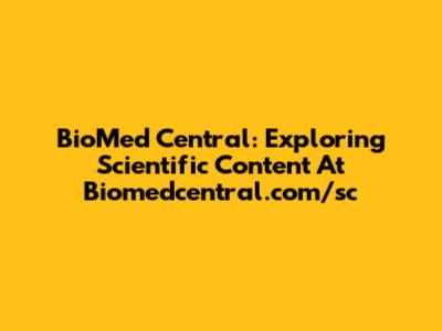 BioMed Central: Exploring Scientific Content At Biomedcentral.com/sc