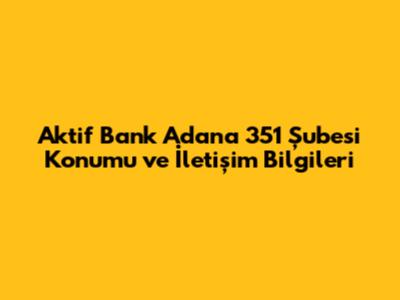 Aktif Bank Adana 351 Şubesinin Kesin Konumu
