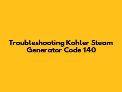 Troubleshooting Kohler Steam Generator Code 140