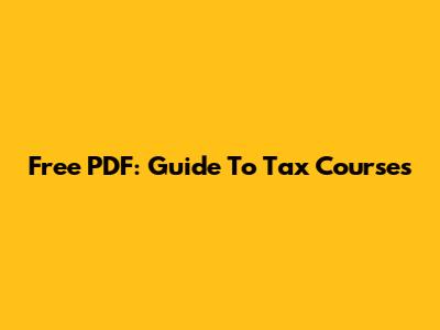 Free PDF: Guide To Tax Courses