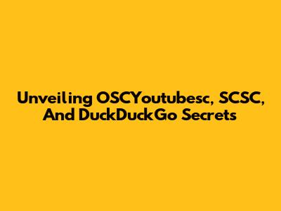 Unveiling OSCYoutubesc, SCSC, And DuckDuckGo Secrets