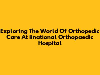 Exploring The World Of Orthopedic Care At Iinational Orthopaedic Hospital