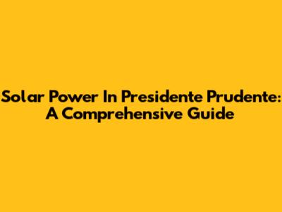 Solar Power In Presidente Prudente: A Comprehensive Guide