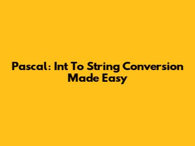 Pascal: Int To String Conversion Made Easy