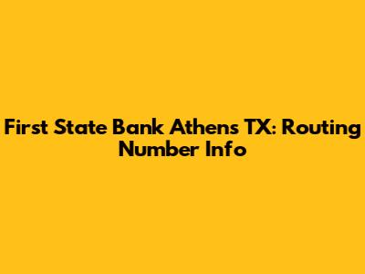 First State Bank Athens TX: Routing Number Info