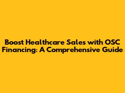 Hey everyone! Today, we're diving deep into a topic that's super relevant for anyone in the healthcare industry looking to boost their sales game: OSC financing. We'll cover everything from what it is, how it works, and how you can leverage it to not only increase sales but also improve your SEO game. So, grab a coffee, settle in, and let's get started!