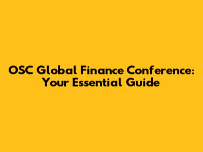OSC Global Finance Conference: Your Essential Guide
