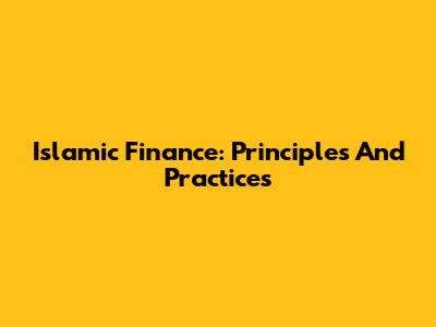 Islamic Finance: Principles And Practices