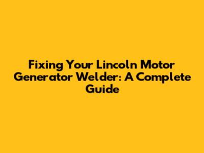 Fixing Your Lincoln Motor Generator Welder: A Complete Guide