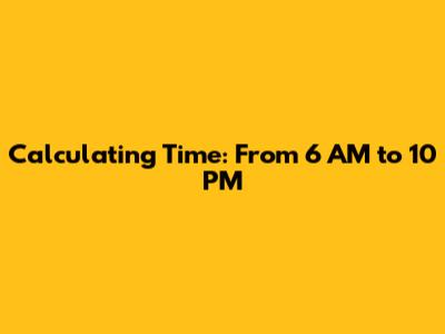 Alright, guys, let's get down to the nitty-gritty of calculating the time between 6 AM and 10 PM. We'll break it down into easy steps so you can follow along without any trouble. Think of it like a fun puzzle – we're just putting the pieces together one by one. This approach guarantees that even if you're not a math whiz, you can easily grasp the concept and get the correct answer. The key is to take it slow and steady, ensuring that each step is understood before moving on. By breaking down the problem, it simplifies the whole process and makes it much more manageable. Trust me, it's easier than you think! Let's get started and see how it all comes together.