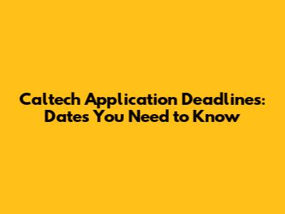 Caltech Freshman Application Deadlines: Mark Your Calendars!