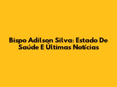 Bispo Adilson Silva: Estado De Saúde E Últimas Notícias