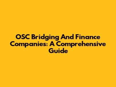 OSC Bridging And Finance Companies: A Comprehensive Guide
