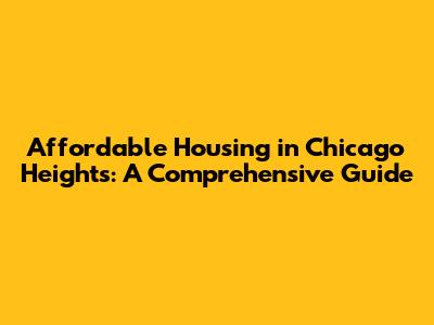 Hey everyone, let's dive into the world of affordable housing in Chicago Heights. Finding a place to live that fits your budget can sometimes feel like searching for a needle in a haystack, right? But don't worry, because Chicago Heights offers a variety of options that might be exactly what you're looking for. This guide is designed to help you navigate the landscape of affordable housing in this vibrant city, whether you're a first-time renter, a family looking for more space, or someone simply seeking a more budget-friendly lifestyle. We will explore various programs, the types of housing available, and the steps you can take to find the perfect home for you. Let's make finding affordable housing in Chicago Heights a breeze.