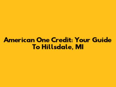 American One Credit: Your Guide To Hillsdale, MI