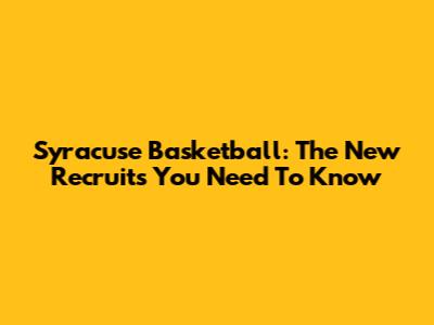 Syracuse Basketball: The New Recruits You Need To Know