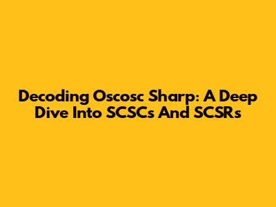 Decoding Oscosc Sharp: A Deep Dive Into SCSCs And SCSRs