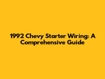 1992 Chevy Starter Wiring: A Comprehensive Guide