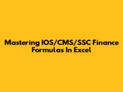 Mastering IOS/CMS/SSC Finance Formulas In Excel