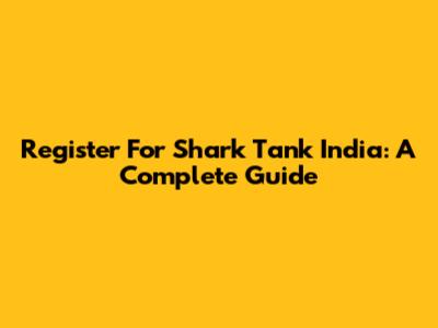 Register For Shark Tank India: A Complete Guide