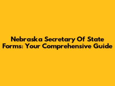 Nebraska Secretary Of State Forms: Your Comprehensive Guide