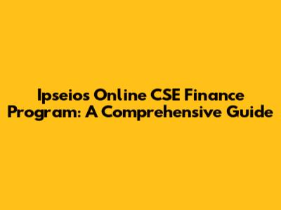 Ipseios Online CSE Finance Program: A Comprehensive Guide