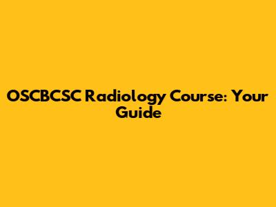 OSCBCSC Radiology Course: Your Guide