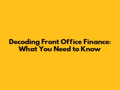 Hey guys! Ever wondered what goes on in the fast-paced world of front office finance? It's where the action happens, deals are made, and the big bucks are, well, managed. Let's break down what front office finance really means, why it's so important, and how it all works. No jargon, just straightforward explanations!