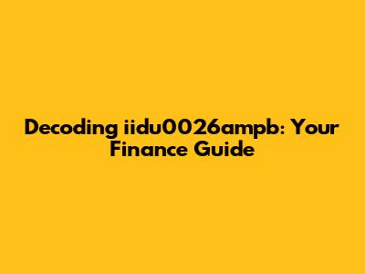 Hey finance enthusiasts! Ever stumbled upon "iidu0026ampb" and wondered what the heck it means? Don't worry, you're not alone! It's a term that pops up in the financial world, and understanding it can be super helpful. Today, we're diving deep into iidu0026ampb, breaking down its meaning, and exploring why it matters. So, grab your coffee (or tea!), and let's get started on this financial journey together! This article is designed to provide you with a comprehensive understanding of iidu0026ampb in finance, ensuring you are well-equipped with the necessary knowledge to navigate the intricacies of financial terminology. We'll be covering its definition, the context in which it's used, its significance, and practical examples to solidify your understanding.