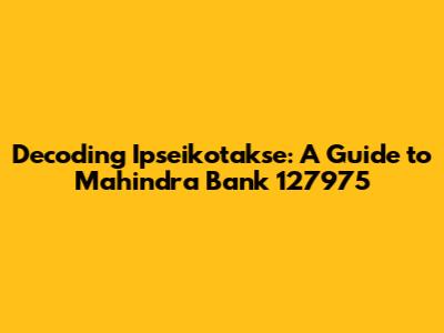 Hey guys! Ever stumbled upon the term "Ipseikotakse" and felt like you've entered a secret code? Well, you're not alone! Especially when it's linked to something as important as your Mahindra Bank account. In this article, we're going to break down what Ipseikotakse means, particularly in the context of Mahindra Bank and code 127975. Think of this as your friendly guide to understanding this seemingly complex term. We'll explore its possible origins, its relevance to banking, and how it might relate to your transactions or account details with Mahindra Bank. No more head-scratching – let's dive in and decode Ipseikotakse together!
