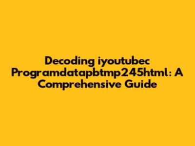 So, let's get straight to the point: what is iyoutubec programdatapbtmp245html? In essence, it appears to be a file path or a component related to a web application or a website. The structure suggests that it is likely a temporary file or a dynamically generated resource. The "iyoutubec" part could indicate the website or application's name or a unique identifier. "programdata" generally points to a directory that stores application-related data, and "pbtmp245html" seems to be the specific filename, possibly created for temporary use.
