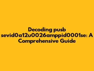 Hey guys! Ever stumble upon something like "pusb sevid0a12u0026amppid0001se" and scratch your head? I know I have! It looks like a jumble of letters and numbers, right? But trust me, it's not gibberish. It's actually a code, or more specifically, a unique identifier. In this article, we're diving deep to unravel what "pusb sevid0a12u0026amppid0001se" means. We'll break down the components, explain its significance, and help you understand where you might encounter it. So, grab a coffee, sit back, and let's decode this mystery together! We'll start with the basics, then move on to the more technical aspects, and finally, we'll discuss the practical implications. Whether you're a tech enthusiast, a developer, or just curious, this guide is for you. Let's get started!