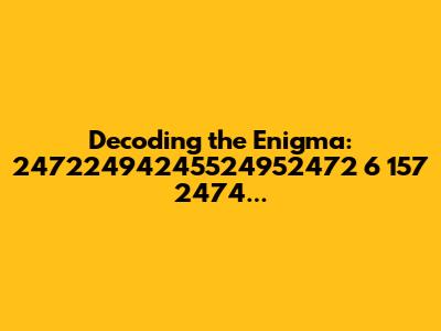 Let's dive into the mysterious world of 24722494245524952472 6 157 2474248025092476. What could this sequence of numbers possibly mean? Well, it could be anything from a serial number to a secret code, or even just a random string of digits. But, hey, where's the fun in that? Let’s try to unravel this numeric puzzle. To begin, it’s essential to break down the components. The sequence appears to be a concatenation of several smaller number groups. We have '24722494245524952472', then a '6', followed by '157', and finally '2474248025092476'. Each of these segments might hold a piece of the overall meaning. The first long number, for instance, could represent a date, an identification code, or some form of measurement. The single digit '6' could be a version number, a category, or an index. Similarly, '157' might be an identifier, a quantity, or a reference number. And the last long sequence could be another identifier, a measurement, or a checksum. To truly decipher this enigma, one would need more context. Where did this number sequence come from? What is the source document or system that uses it? Without this information, any attempt to decode it would be pure speculation. It’s kind of like finding a single piece of a jigsaw puzzle and trying to figure out the entire picture. You might get lucky, but most likely, you’ll need more pieces to get a clearer view. In cryptography, context is king. Even the most complex encryption can be broken with enough information about the system used to create it. So, if you stumble upon a mysterious number sequence like this, your first step should always be to gather as much context as possible. Look for clues in the surrounding text, the file it’s stored in, or the system that generated it. Who knows? You might just be the one to crack the code!