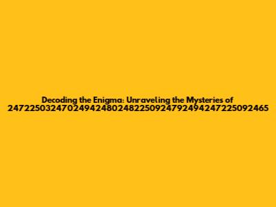 Hey everyone! Ever stumble upon something that just seems… coded? Like a secret message or a complex sequence that begs to be understood? Well, today, we're diving headfirst into a real puzzle: the string of numbers, 247225032470249424802482250924792494247225092465. It looks like a random jumble, right? But trust me, every sequence has a story, a reason for being. Our mission is to crack this code and see what secrets it holds. It's like being a digital detective, and we're about to put our sleuthing hats on. Get ready to explore the possibilities, the potential meanings, and the sheer fascination behind this seemingly inscrutable string. Let's get started, guys!