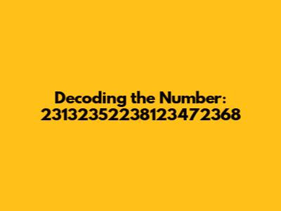 Alright, guys, let's dive into something a bit quirky today – a number, and not just any number, but 23132352238123472368. You might be wondering, “What’s so special about this string of digits?” Well, on its own, probably not a whole lot. But let’s explore some fun and creative ways we can think about and potentially decode a number like this. Numbers are the building blocks of so much in our world, from the mundane to the magnificent. They govern the flow of data, the precision of engineering, and even the beauty of art. When we encounter a large, seemingly random number, our brains naturally try to find patterns or meanings hidden within it. Let's embark on this numerical adventure together. First off, let's acknowledge that a number like this, without any context, is essentially just a sequence. It doesn't inherently mean anything profound unless we decide to assign it some significance. Think of it like a blank canvas – we're the artists here, and we get to decide what masterpiece (or at least, interesting doodle) we create. Now, how can we approach decoding something like this? One way is to consider if it could be related to a date. Is it a timestamp? Could segments of the number represent years, months, days, or even hours and minutes? Another approach might be to see if the number corresponds to any known identifiers. Does it resemble an account number, a product ID, or some other kind of serial number? In the digital age, large numbers are often used as unique identifiers in databases and systems. Or, think about breaking the number down mathematically. Are there any interesting properties? Is it divisible by certain prime numbers? Does it have any peculiar relationships to other numbers? This might lead us down some rabbit holes of mathematical exploration, but who knows what we might discover? Let's not forget the human element. Numbers often hold sentimental value. Could this number be linked to a significant date, a lucky number, or even a combination of important figures? Sometimes, the most meaningful interpretations are the ones we create ourselves. So, while 23132352238123472368 might seem like a random jumble of digits at first glance, with a little bit of creativity and exploration, we can transform it into something far more intriguing. It's all about perspective and the stories we choose to tell with these numerical building blocks. In conclusion, while the number itself may not hold inherent meaning, the exercise of trying to decode it encourages us to think critically, explore different possibilities, and appreciate the underlying structure of numbers in our world. So, go ahead, take a stab at it – what does 23132352238123472368 mean to you?