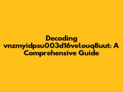 Hey guys! Ever stumbled upon a weird string of characters online and wondered what it meant? Today, we're diving deep into the mysterious world of "vnzmyidpsu003d16velouq8uut." This alphanumeric sequence might seem like gibberish at first glance, but trust me, there's usually more than meets the eye. Understanding these strings can be super helpful, especially when you're trying to troubleshoot technical issues or just make sense of the digital landscape. So, let's get started and unlock the secrets behind this intriguing code!