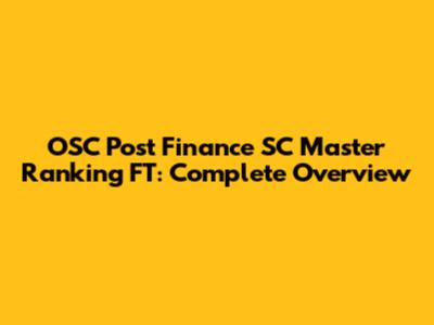 OSC Post Finance SC Master Ranking FT: Complete Overview