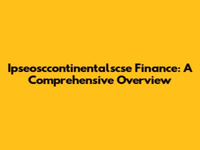 Ipseosccontinentalscse Finance: A Comprehensive Overview