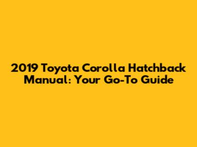2019 Toyota Corolla Hatchback Manual: Your Go-To Guide