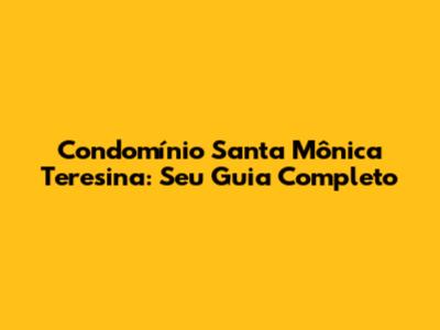 Condomínio Santa Mônica Teresina: Seu Guia Completo
