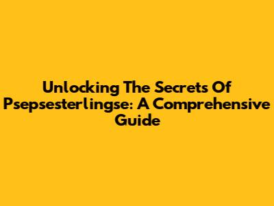 Unlocking The Secrets Of Psepsesterlingse: A Comprehensive Guide
