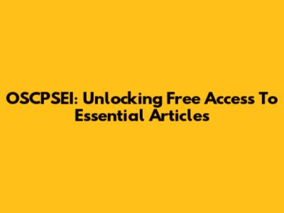 OSCPSEI: Unlocking Free Access To Essential Articles