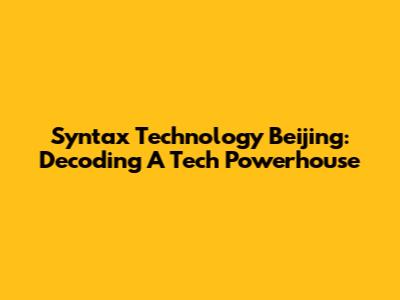 Syntax Technology Beijing: Decoding A Tech Powerhouse