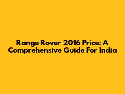Range Rover 2016 Price: A Comprehensive Guide For India