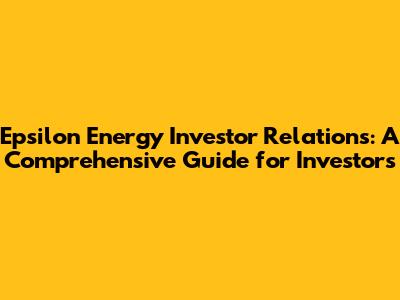 Hey there, future investors! If you're looking into Epsilon Energy and its investment potential, you've landed in the right spot. Let's dive deep into Epsilon Energy's investor relations, exploring everything you need to know about the company and how it interacts with its shareholders. We'll be covering crucial aspects like financial performance, how to access investor information, and the overall strategies Epsilon Energy employs to keep investors informed and engaged. So, grab your favorite beverage, get comfy, and let's get started on this exciting journey into the world of Epsilon Energy! This deep dive aims to arm you with the knowledge needed to make informed investment decisions. This article isn't just about regurgitating facts; it's about providing a clear, engaging, and comprehensive overview of Epsilon Energy's investor relations. We want to ensure that you, the investor, are well-equipped with the necessary insights to understand the company's dynamics and potential. Let's get started.